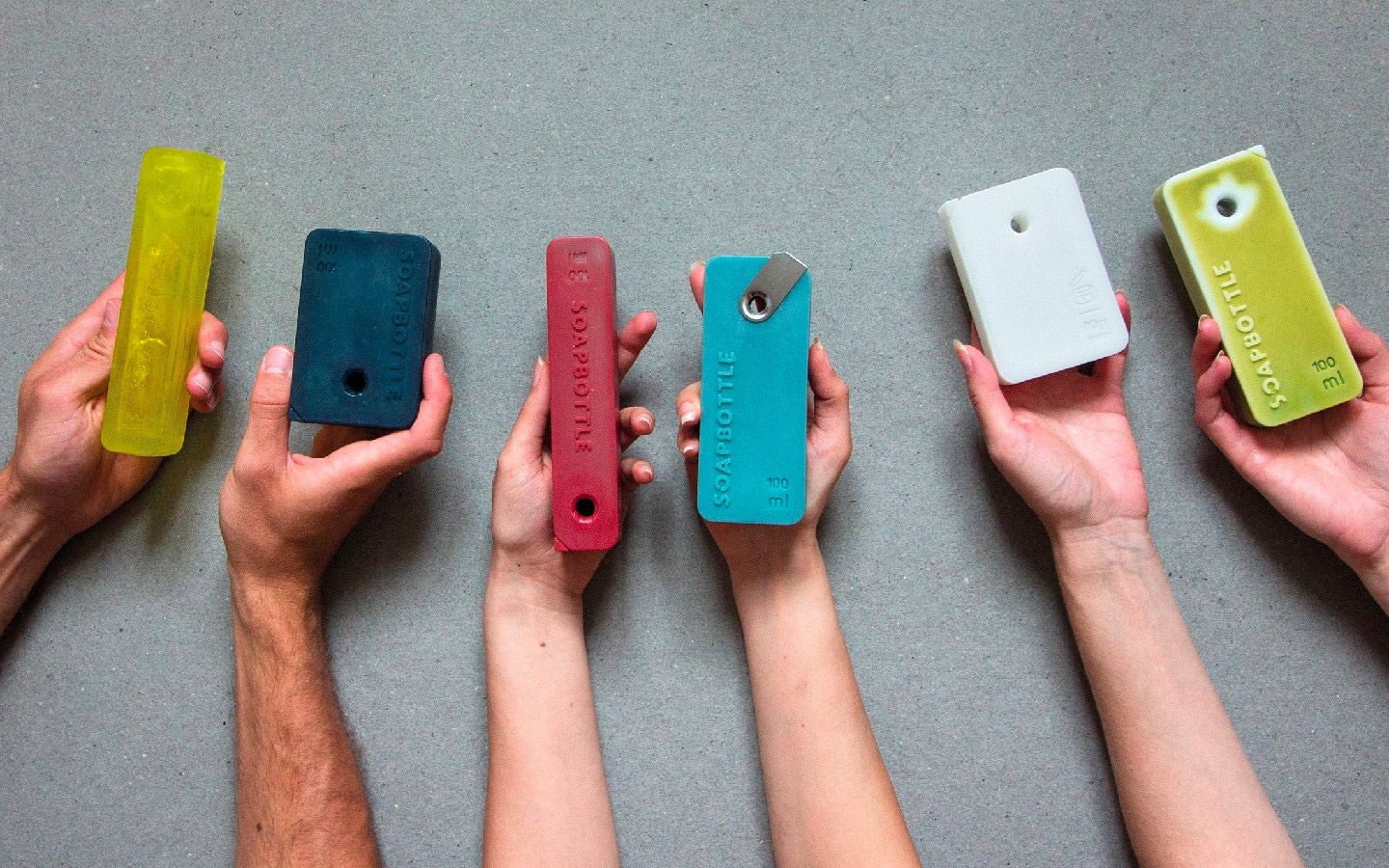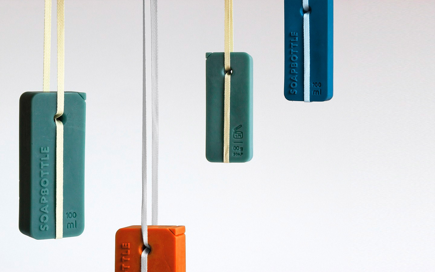 SOAPBOTTLE 在設(shè)計(jì)中加入了無包裝化妝品的概念,具體方式是將產(chǎn)品本身成為其自身的包裝。采用天然材料制作的香皂具有可生物降解的特性,因此可以完全避免垃圾產(chǎn)生。它外部的包裝由肥皂制成,隨著時(shí)間的推移會逐漸降解。與傳統(tǒng)的塑料容器不同,它不會留下任何廢物,也不會導(dǎo)致任何環(huán)境污染。每個(gè)瓶子的頂部都有一個(gè)孔可讓細(xì)繩穿過,從而提供了簡單且可重復(fù)使用的存儲方法。當(dāng)液體用完后,剩下的部分還可以當(dāng)作洗手香皂使用,或是再次加工成其它洗滌劑或清潔劑使用。